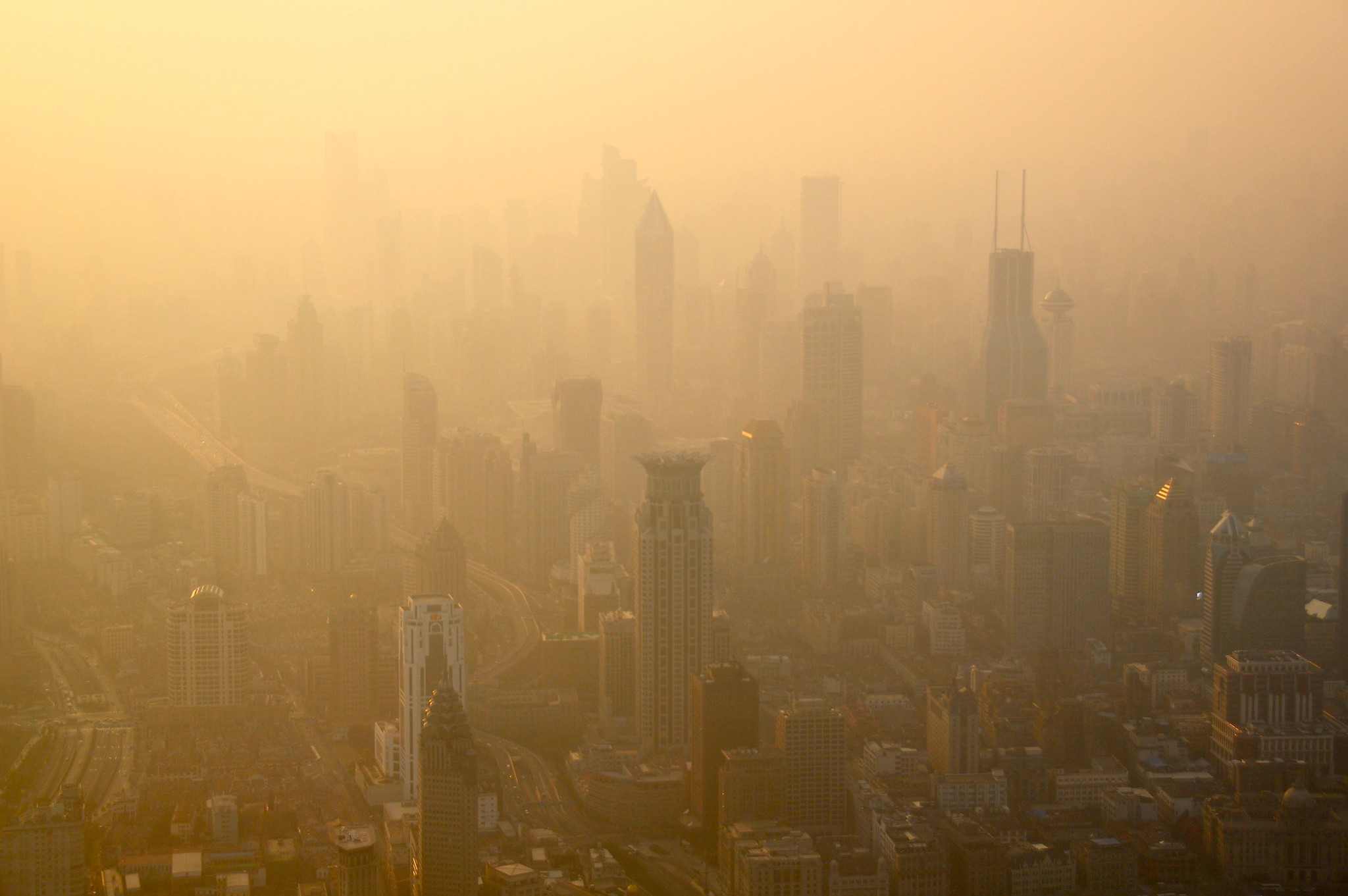 Tramonto a Shanghai (Cina). Lo smog è talmente intenso da schermare gran parte della radiazione solare, facendo diventare il cielo opaco. Crediti: Shreyans Bhansali.